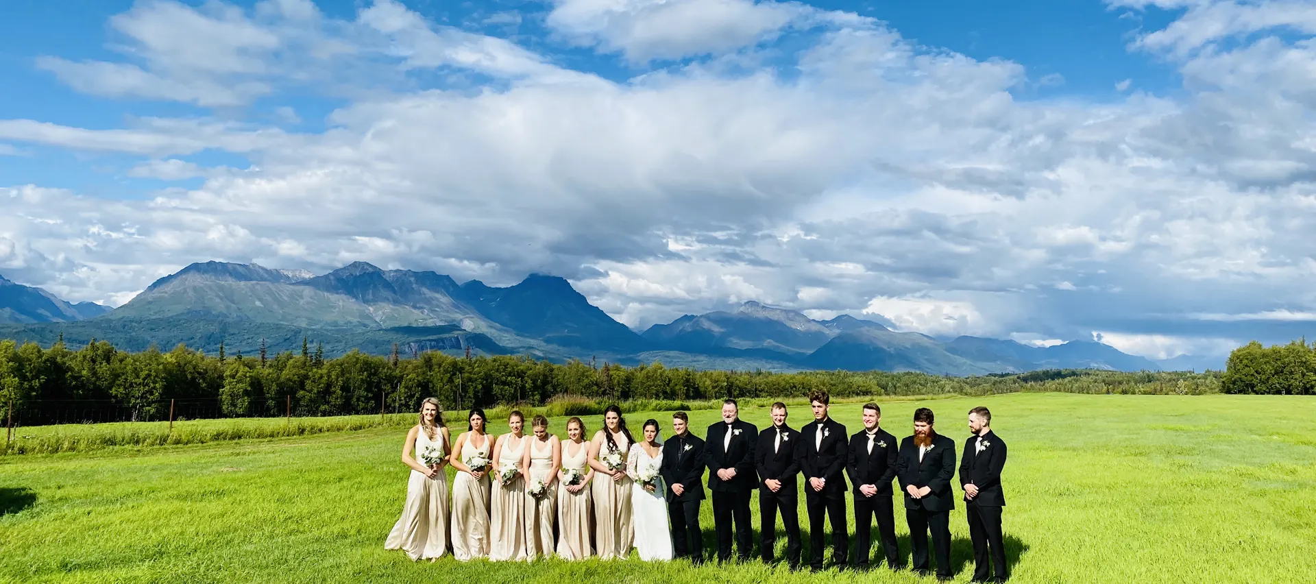 Our wedding location offers something for everyone, from simple to grand. The Field & Mountian is an incredible 80 acres of hay that sweep right into Lazy & Red Mountains with the Chugiak all the way to the Inlet on a clear day! It is absolutely movie worthy wedding venue!
